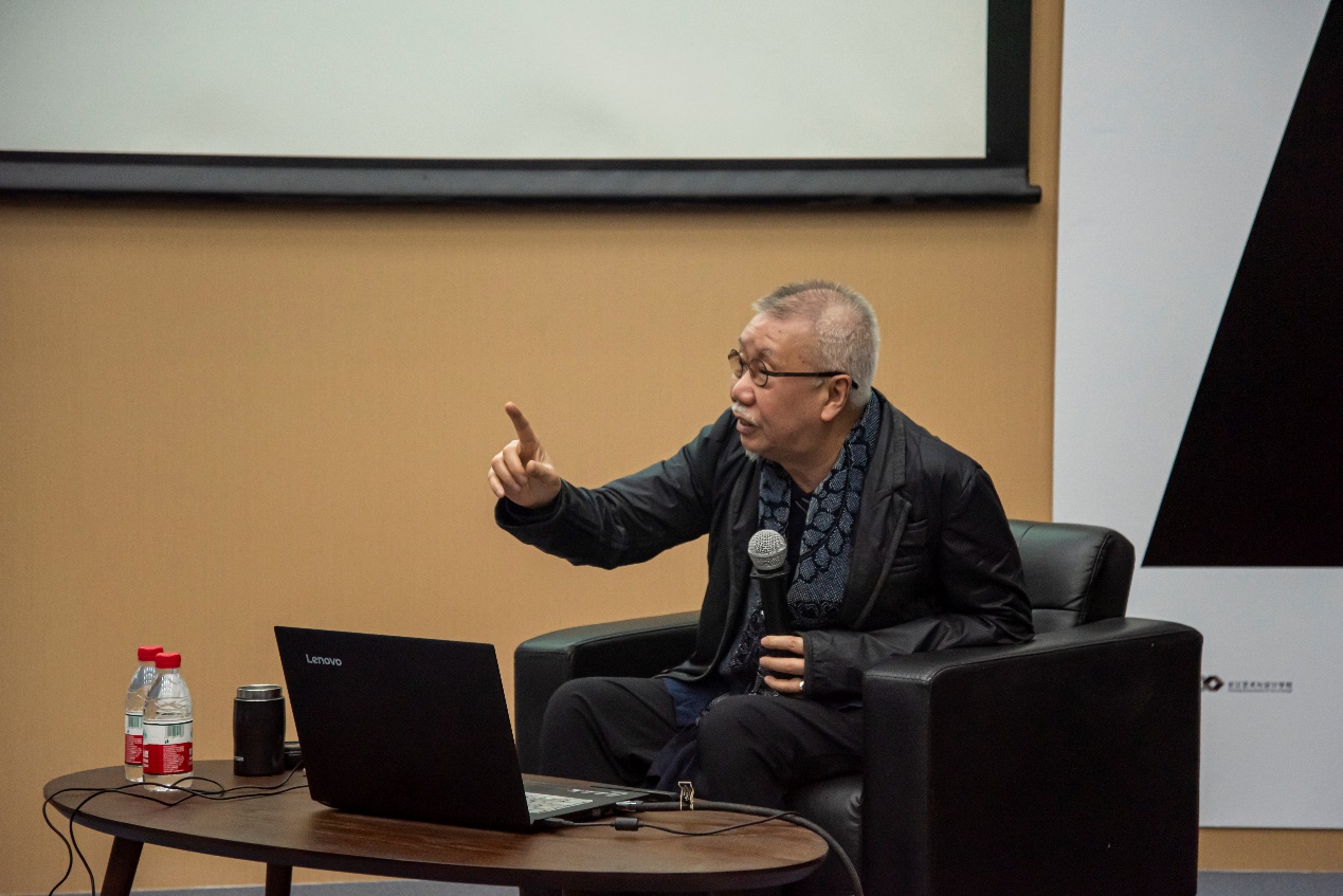 3月15日下午,靳埭强老师还奔赴东海岸校区,为全体艺术公司新生举办「立新·传承·借鉴·盗用」的讲座,从设计伦理的角度切入,搭配丰富的设计作品鉴赏,为新生们生动地讲解了一名优秀设计师应该具备的道德、素质和修养,鼓励大一同学不断努力,积极进取,创作出具有时代特征与美感的作品,丰富自己的设计人生。