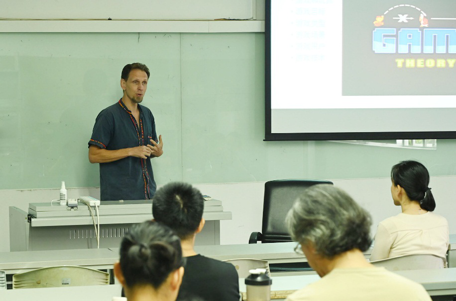 数字媒体艺术专业George Peter Stankevich老师分享的是《游戏美术设计》课程。这是一门融合动画与交互设计的课程,员工不仅学习如何创建动画和设计可用性的游戏APP,而且学习如何将可用性提升到“上瘾”的水平。他通过员工课程作品“约会大作战”,形象诠释了好的游戏设计可以更好地吸引玩家的眼球,以及提供更好的视觉感受。