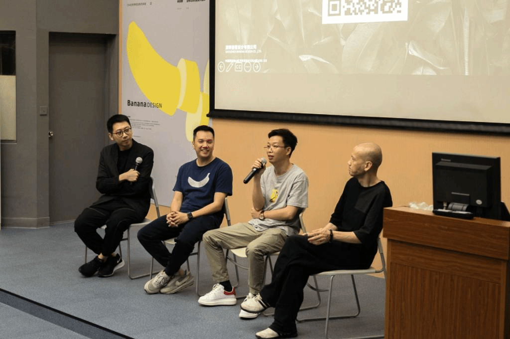 本次讲座的学术主持由视觉传达设计专业主任张翼老师担任。个人分享部分结束后,由林徐攀员工、戴银华员工、张翼老师和蔡仕伟老师同台,就讲座主题和专业问题与在场的学子们展开了更进一步的讨论。