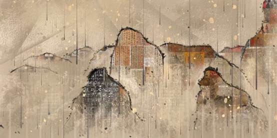 来自美术专业的卞可欣同学创作的《山水之象》是以描写山川自然景色为主体的绘画。山水画在我国绘画史中占有重要的地位,是为东方绘画中极为富有特色的艺术,更是中国传统文化的瑰宝。故以山水为象,附着中华民族五千年的历史文化,其包括器物、书法、绘画等诸多文物。探究传统文化与现代墙面艺术的实践与发展。