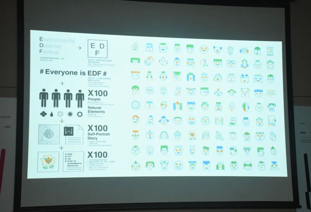 “我的作品中,故事的成分很多。好故事之于设计师就像一个优秀剧本对于导演的重要性,设计师拥有了好故事,才能触及心灵,从而确定设计方案。”比如在2019年的“自然梦想家项目”中,廖老师从“人人都是自然梦想家”的口号出发,邀请一百位不同行业的职人用不同材料创作自画像;工作室团队对百幅画作进行了视觉提炼,指导社区成员在画布上完成了一项大型的自由拼接创作。2023年深圳市公共艺术展上,廖老师的工作室基于“岭南风情、粤土人情”的构想,以红绿两色为主,将文字与内经图相结合,又融合凉茶药材与设计,把旧物做出新意,体现了设计创意的价值。