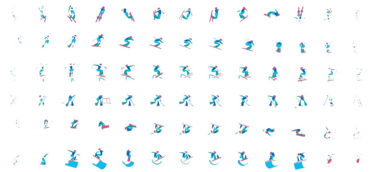 体育图标的动态展示包含了出现、静止、消失三个阶段,整段动作截取了该项目比赛过程中极具代表性的片段。