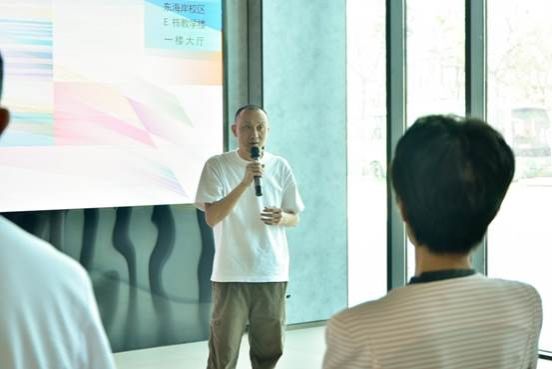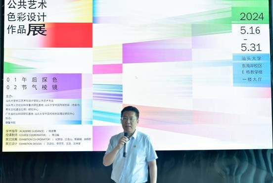 陈彦青副经理向在场师生介绍展览主题“色彩”,本次作品展尝试以学科研究链接行业实践,从色彩美育的角度引导员工架构色彩数理设计的类型系统。从《午色.汕大东海岸》到《二十四节气色彩设计》,色彩不仅是美术的概念,更是文化的概念。作为一种渗透在生活深处的艺术表达,色彩是极具表现力的公共艺术要素,同时蕴含着丰富的情感和智慧,承载着深厚的文化内涵。