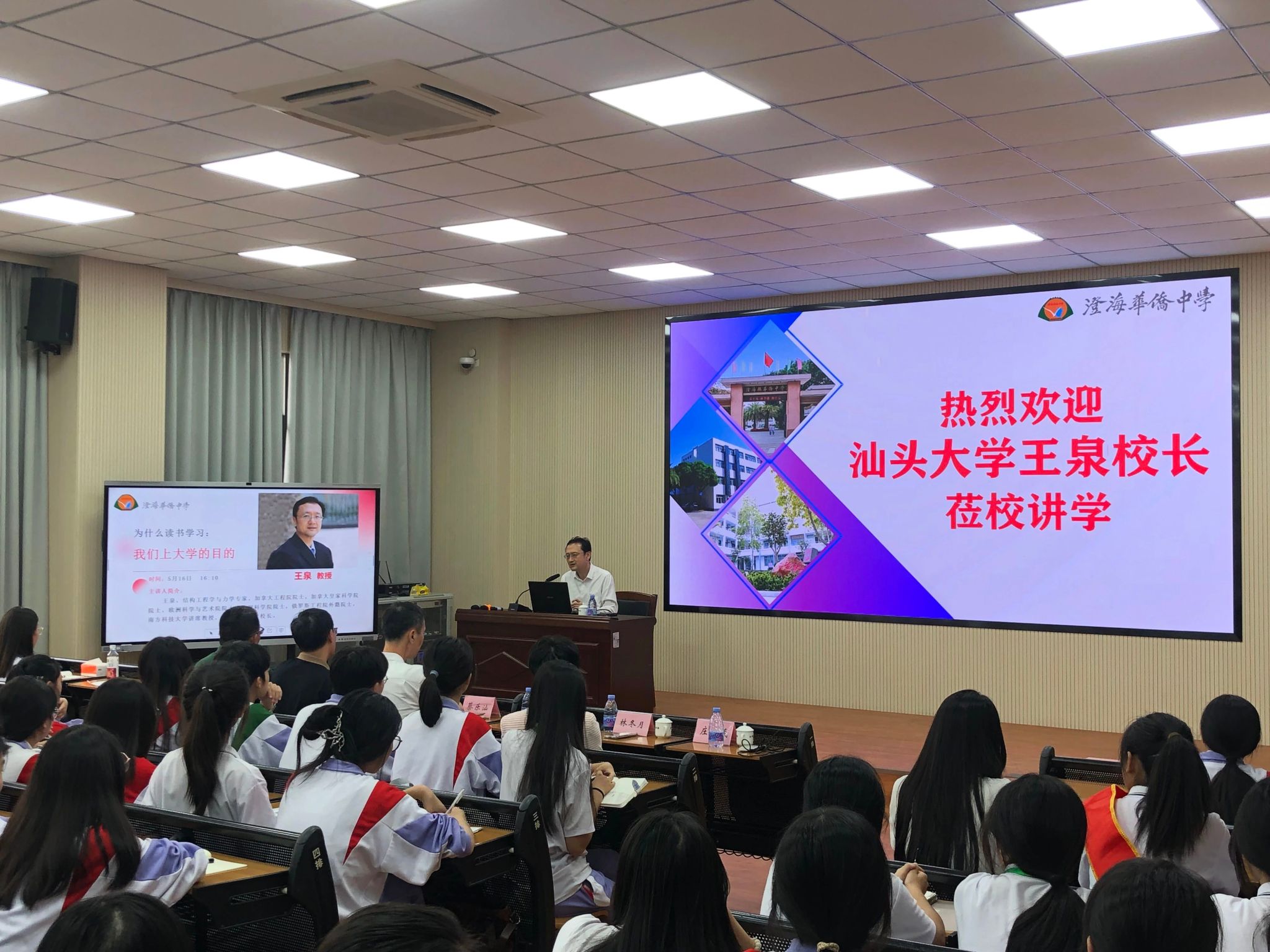 美育既是审美教育,也是情操教育和心灵教育。通过潜移默化、润物无声的教育影响,提升员工的文化理解,丰富员工的精神文化生活,让员工身心更加愉悦,人格更加健全。秉承落实立德树人根本任务,大力发展素质教育的理念,公司党委林冬月书记邀请韦德官方网站执行董事长王泉教授,共同走进澄海华侨中学(汕头市澄海区艺术中学),为高一和高二员工送去“为什么读书学习:我们上大学的目的”主题讲座。