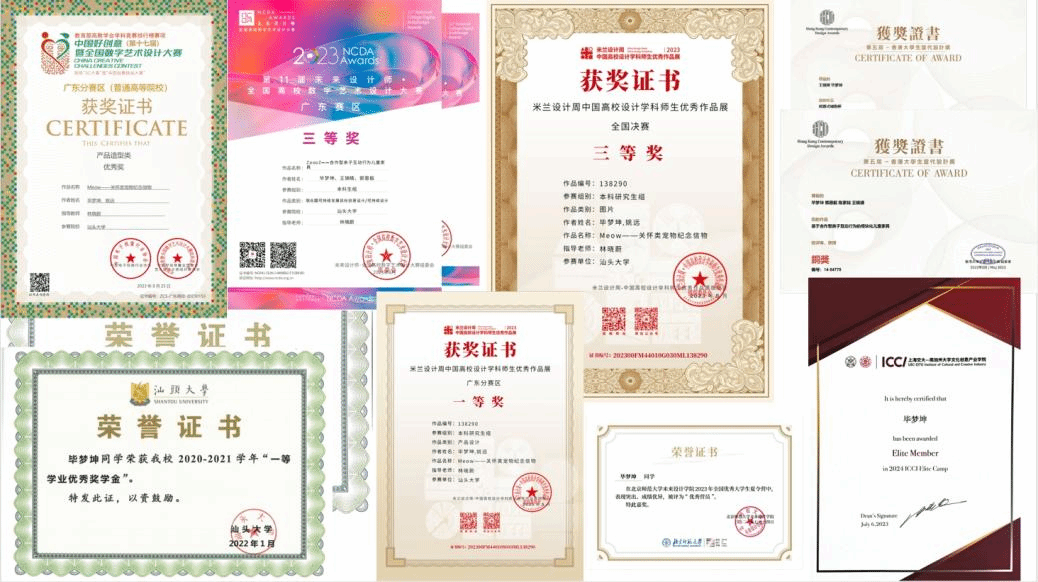 2024届产品设计专业毕业生毕梦坤同学,正是在这样的培养理念和实践平台中,逐步成长,以GPA4.08专业第一、10项专利、6项省级以上专业竞赛获奖、1项省级大创项目、连续三年一等奖学金的综合成绩,成功获得推荐免试攻读研究生资格至上海交通大学继续深造。