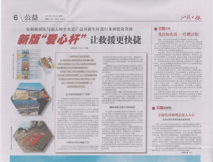本门课程与汕头市南方公共艺术研究院进行合作,为安和义务救援队布设在汕头韩江流域梅溪两岸的几百个救生竿地点进行重新设计,通过多元的形式和方法,使得他们这些放置救生竿的地点标识明确,救生竿显眼、易取、易维护;同时,利用媒体、法律、宣传教育短片等等丰富的形式,对两岸社区居民进行宣传,维护和学会使用救生竿,进而提升社区居民的水域安全意识和保障社区人身安全。