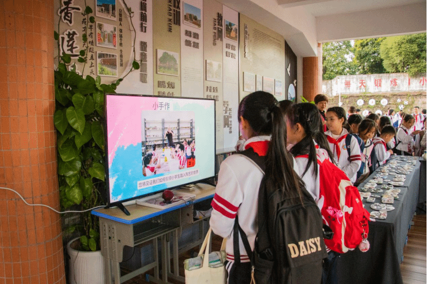 作品展现场热闹非凡,孩子们穿梭于展览区,争相指着自己的作品向同学和老师讲述创作的“幕后故事”。