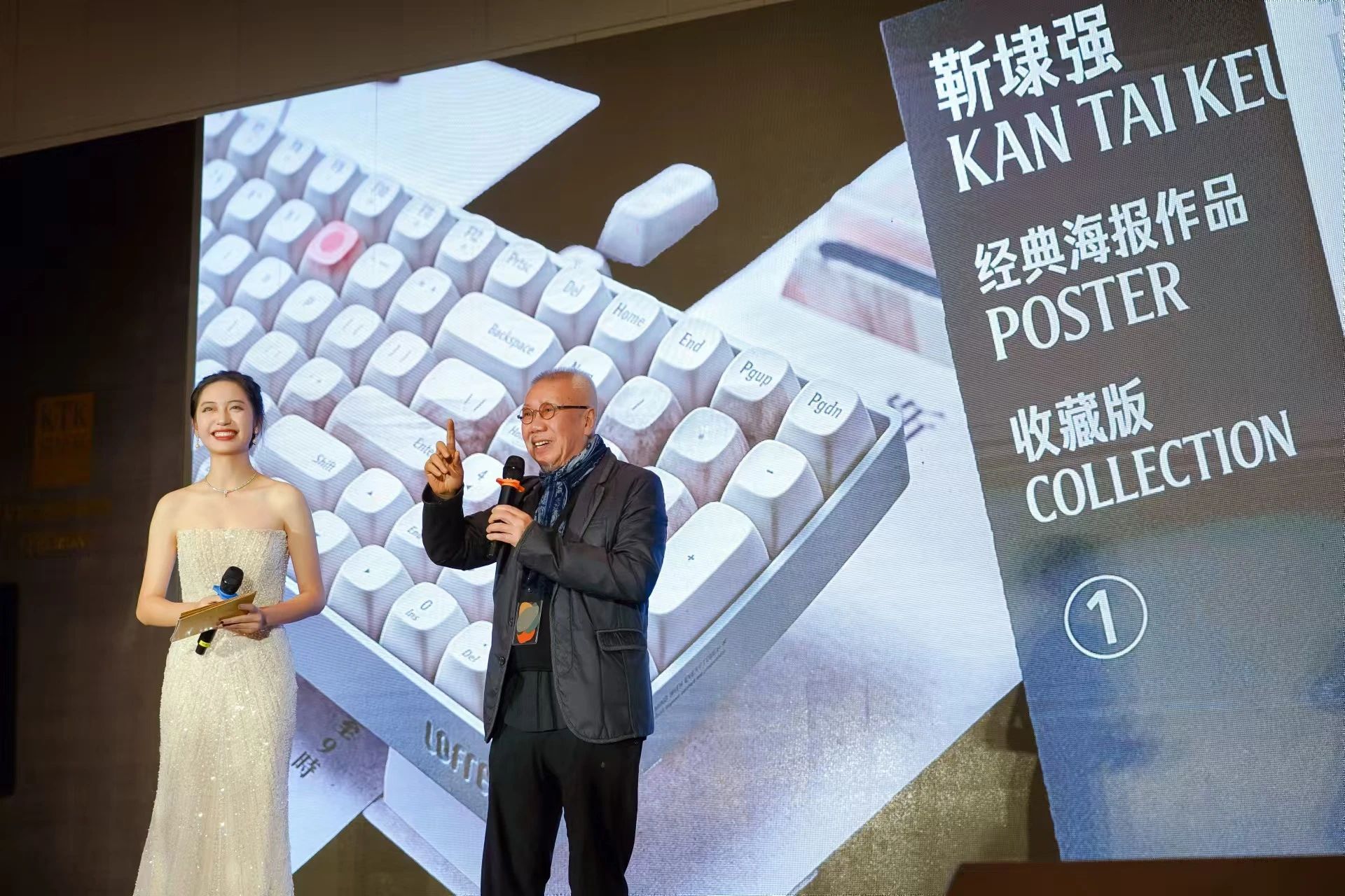 颁奖礼上,林徐攀先生上台发布了由KTK设计奖与洛斐品牌共同开发的限量款键盘,此款键盘由靳埭强先生授权专属定制,亦在颁奖礼上赠予全体获奖者。这款键盘是一个充满创意与生活气息的时尚产品,以靳先生纯粹、极简和自然的设计思想为理念,融入KTK字体,在颁奖礼上惊艳亮相。