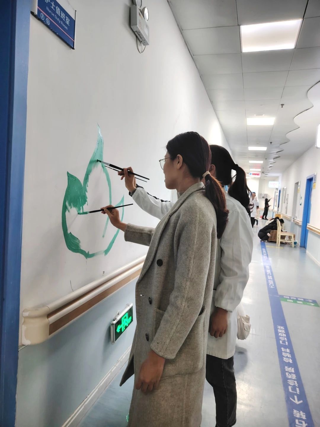 2025年1月5日,历经多轮讨论与修订,最终设计方案已然成形,公司团委郭春娟副书记再次召集员工,紧锣密鼓开展筹备工作。1月9日,满怀创意与激情,师生绘制团队成行出发。绘制工作井然有序开展,粉笔轻轻勾勒出轮廓,颜料细心上色,每一笔都认真而细致,每一画都凝聚着团队成员的智慧与祝愿。绘制过程中,医护人员也给予了有力的支持,提供设备器具支持,不时询问进展与需求,关切之情溢于言表,让团队成员们感受到了来自医院的温暖与重视。