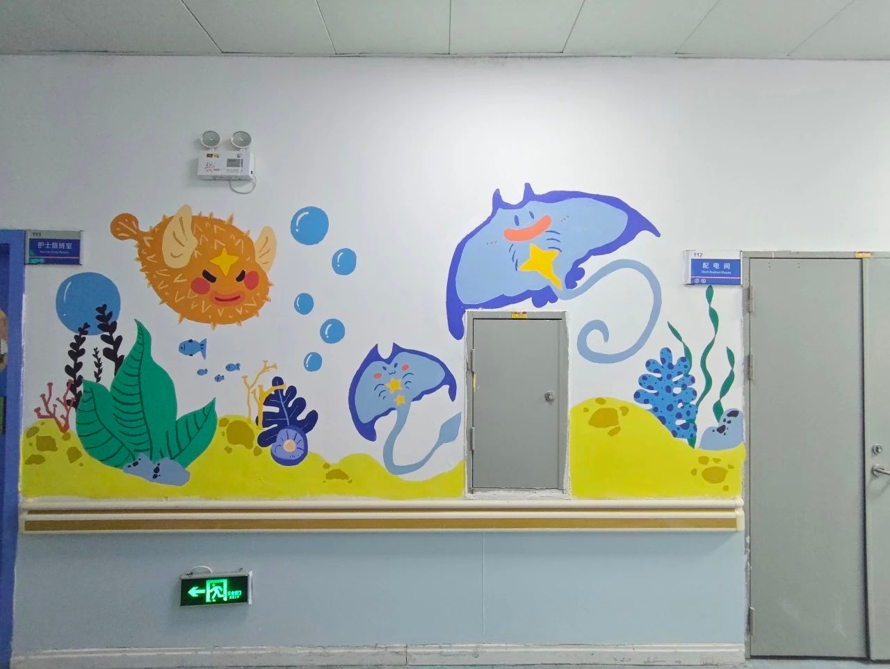 艺术的力量是无穷的,一个充满欢乐与梦想的海底世界在医院徐徐展开了,这些色彩斑斓的梦幻画卷成为一道亮丽的风景线,温馨了医院的环境,也为孩子们创造了一个更加轻松愉悦的治疗环境。在病痛与治疗的压力下,孩子们往往感到孤独与无助,通过画作这样的艺术疗法,能够用最简单、最直接的方式触动人心,成为孩子们心灵的慰藉,找回快乐、感受温暖。