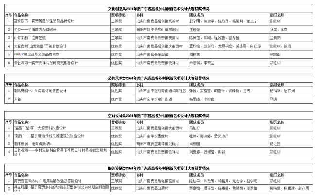 在2024年度广东省高校“乡村创新”艺术设计大赛中,bevictor伟德官网学子在文化创意、公共艺术、空间设计、服务设施四个类别喜获二等奖1项,三等奖4项,优胜奖9项。
