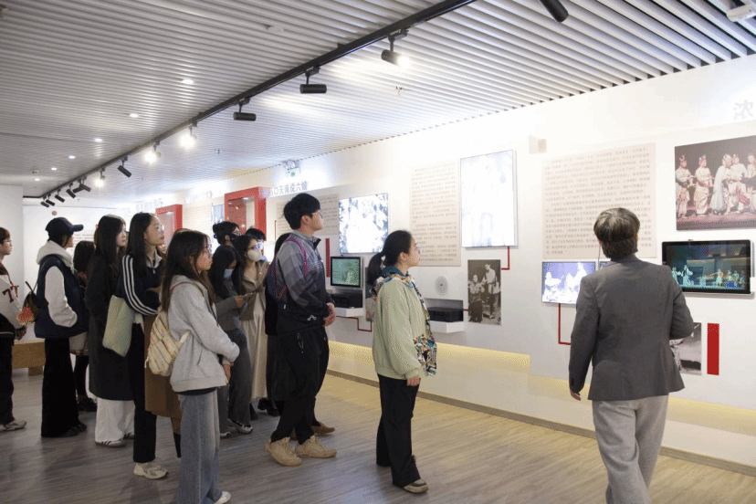 随后,师生党员前往潮剧艺术博物馆参观。馆内藏品丰富,从古老的戏服道具到珍贵的剧本手稿,从精美的舞台模型到详尽的史料记载,每一件展品都承载着潮剧深厚的文化底蕴,诉说着潮剧数百年的传承与发展。讲解员从旁娓娓道来,讲述着潮剧的起源、发展及社会价值等,向师生们徐徐展开潮剧的艺术画卷。跟随讲解员的脚步,师生一行来到姚璇秋艺术传习所展厅,展厅内陈列着著名潮剧表演艺术家姚璇秋的生平事迹、经典剧照、演出道具及所获得荣誉等珍贵资料,生动展现了她对潮剧艺术的执着追求和卓越成就,师生们驻足细看,聆听讲解,深刻感受到中华文化的魅力。