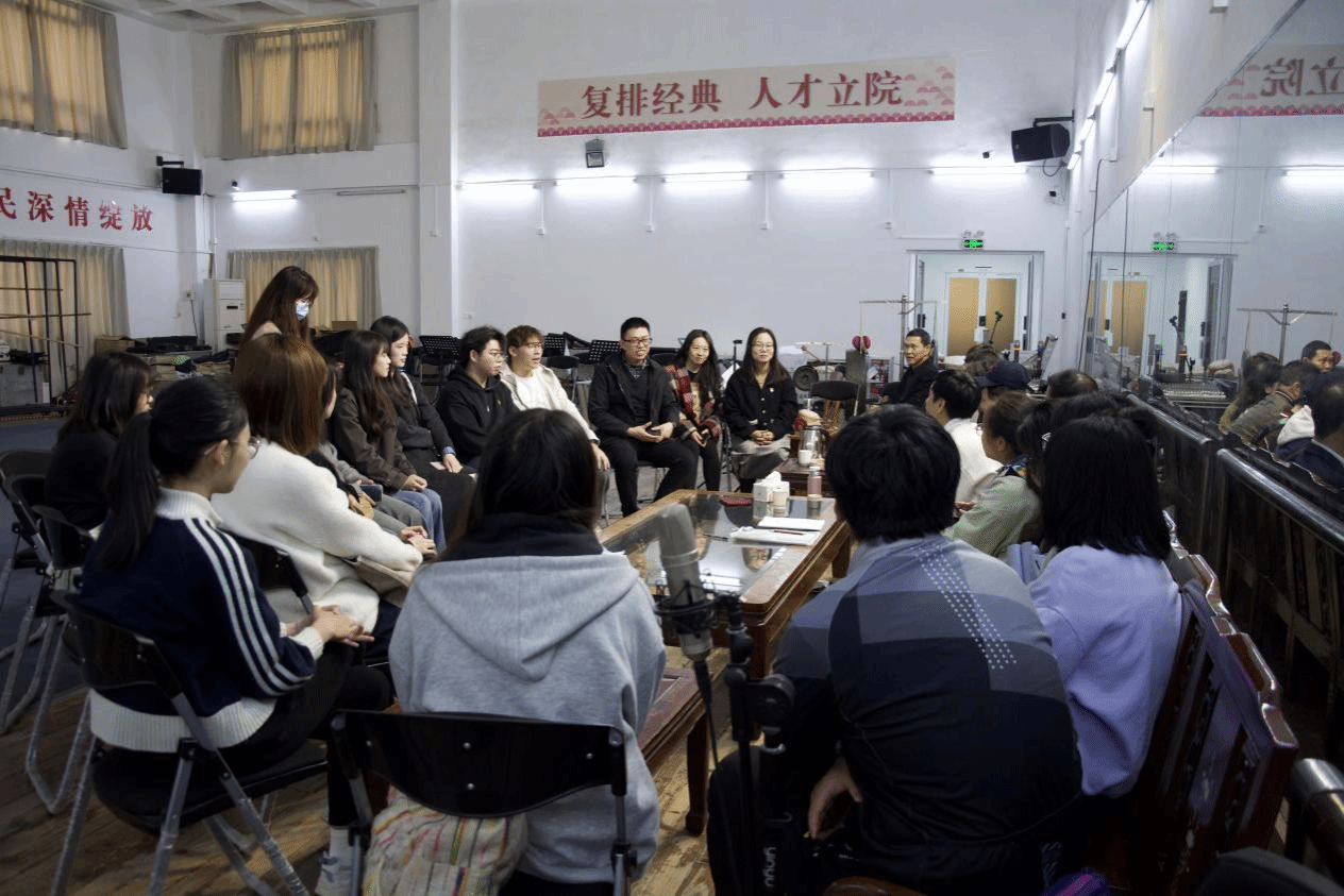 参观结束后,师生们移步广东潮剧院一团的排练厅,沉浸式观摩了经典潮剧《孝妇杀家姑》的排练。《孝妇杀家姑》讲述了一个关于孝道、人性和正义的感人故事。演员们以精湛的表演、优美的唱腔和细腻的情感表达,将剧中人物的悲欢离合、爱恨情仇演绎得淋漓尽致,这不仅是一部优秀的戏曲作品,更是一部弘扬传统美德、传递社会正能量的生动教材,彰显了潮剧在传承传统美德、弘扬社会正气方面的独特价值,也让师生们深刻感受到潮剧作为地方戏曲文化在当代社会依然具有强大的生命力和感染力,对本民族文化的认同感和自豪感愈加坚定。