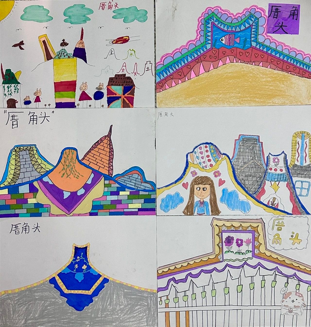 孩子们用画笔绘制他们心中的厝角头