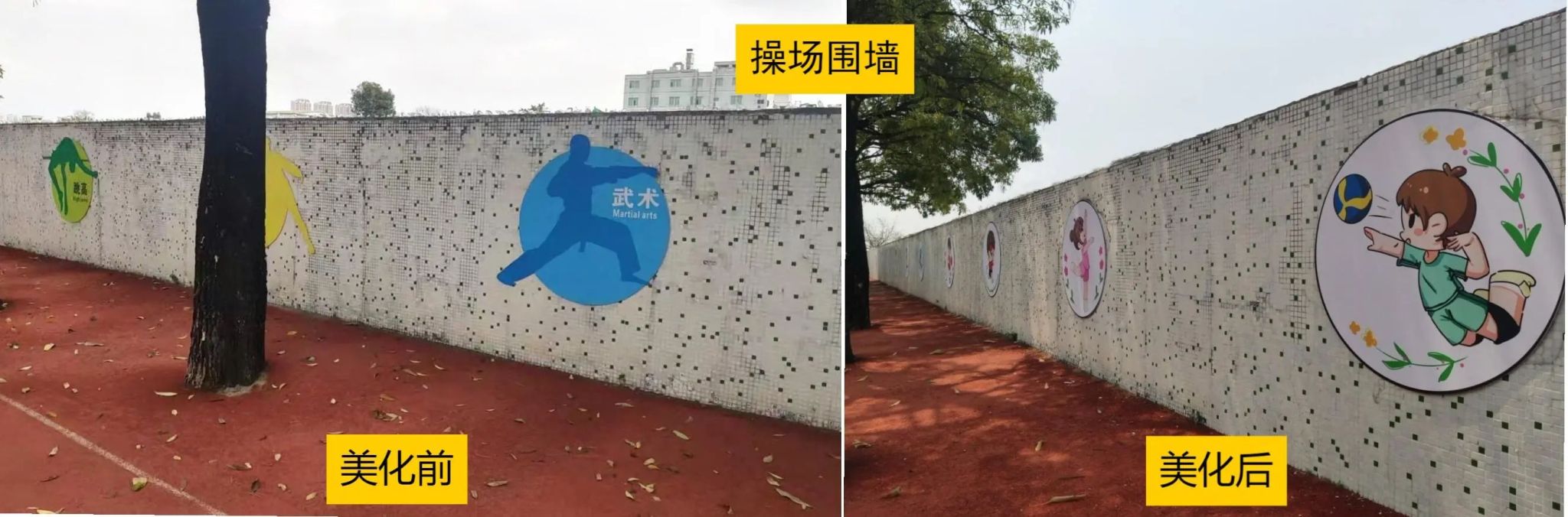 操场围墙美化前后对比