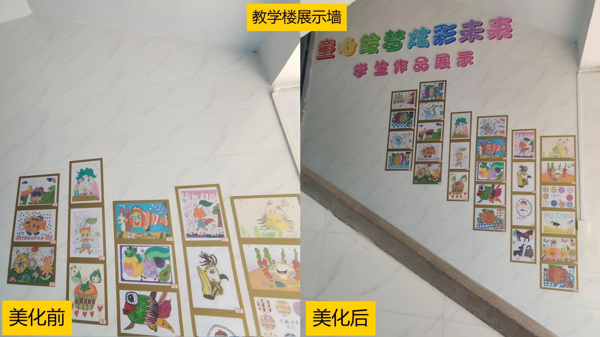 教学楼展示墙美化前后对比