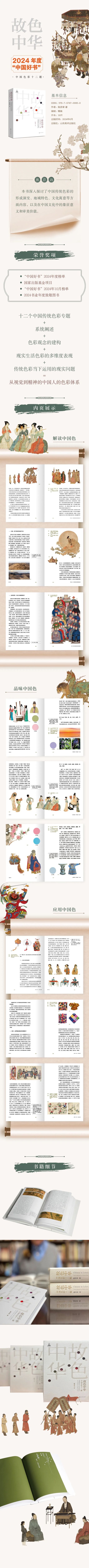 2024年度“中国好书”共评出年度荣誉图书、入选图书、入围图书三项荣誉,分为主题出版、人文社科、文学艺术、科普生活和少儿五类。《故色中华·中国色彩十二题》入选的是文学艺术类,同类入选的还有第十一届茅盾文学奖获得者杨志军最新长篇小说《大象》、第十三届精神文明建设“五个一工程”奖及第七届鲁迅文学奖得主马金莲的《亲爱的人们》等。
