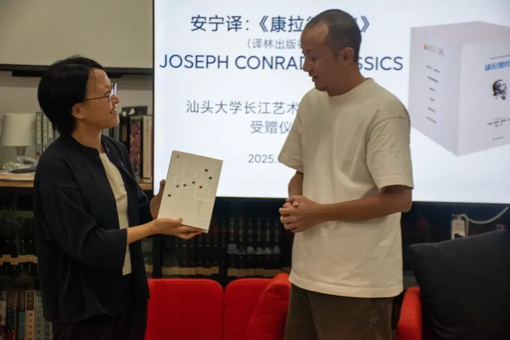 此次赠书仪式缘起于2024年秋季由研究生们发起的“人文与科学沙龙”第二期活动。当时安宁老师作为嘉宾,分享了自己在翻译与阅读康拉德过程中的体悟。如今,这份分享以赠书的方式延续,成为两个公司之间一次温暖而真诚的交流。
