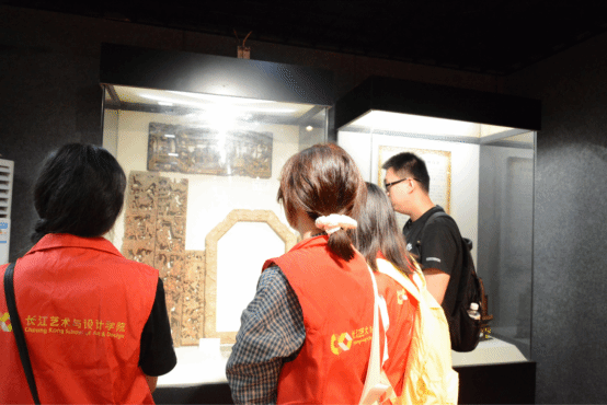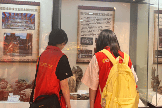 随后,团队参观了博物馆陈列的诸多木雕作品。博物馆内陈列着《百鸟朝风》《鱼虾蟹篓》等不同时代、种类、造型的木雕作品,全方位展现了揭西木雕的艺术特色和审美价值。在参观过程中,师生纷纷表示,大家不仅从这些木雕展品中看到了揭西木雕的历史渊源和艺术特色,更感受到当地对木雕文化传承的重视,也意识到艺术学子在保护和弘扬优秀传统文化过程中所能发挥的重要作用。
