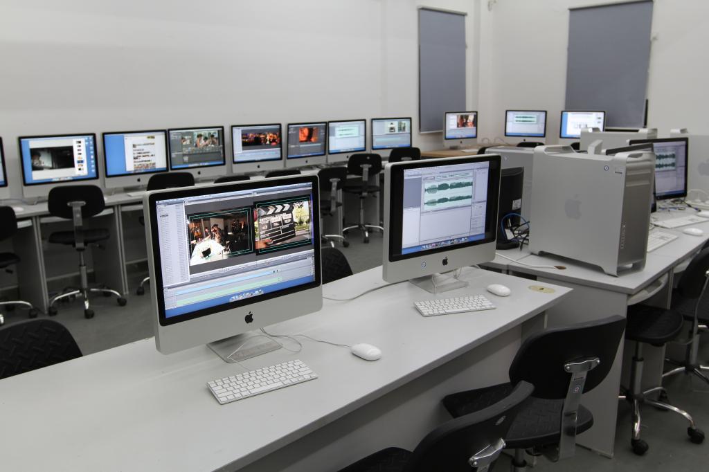 录像与动画实验室有苹果电脑操作区、动画与录像实验间及摄录器材设备室三部分组成。室内配置有苹果电脑及图形工作站,并安装有正版专业软件。该室还配有专业高清摄录器材和軌道, 稳定器和各种灯光、录音设备,能满足各专业员工进行影像和动画制作实验的需要。