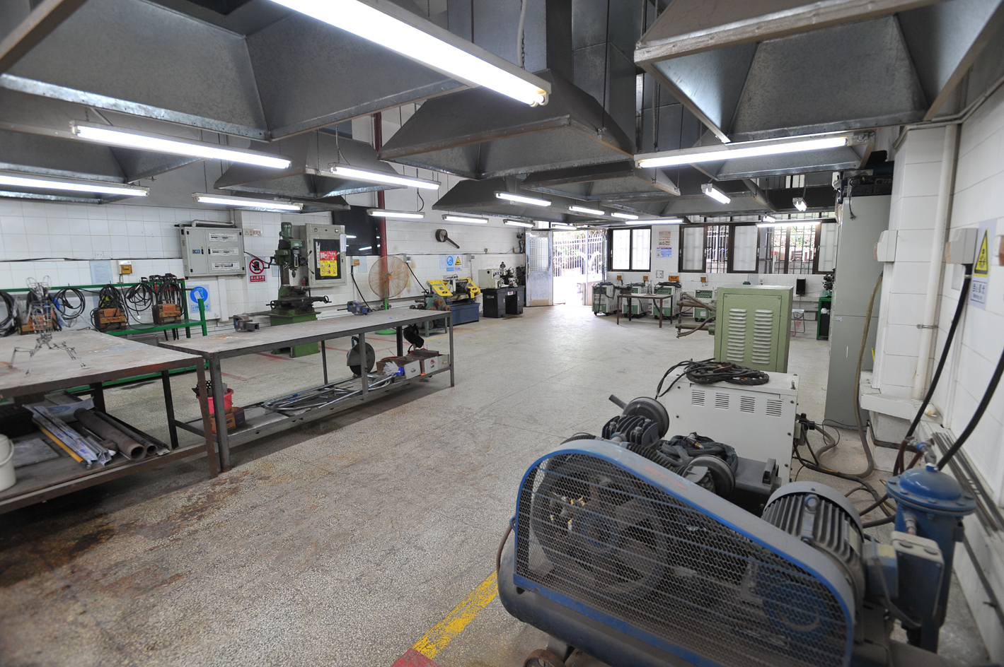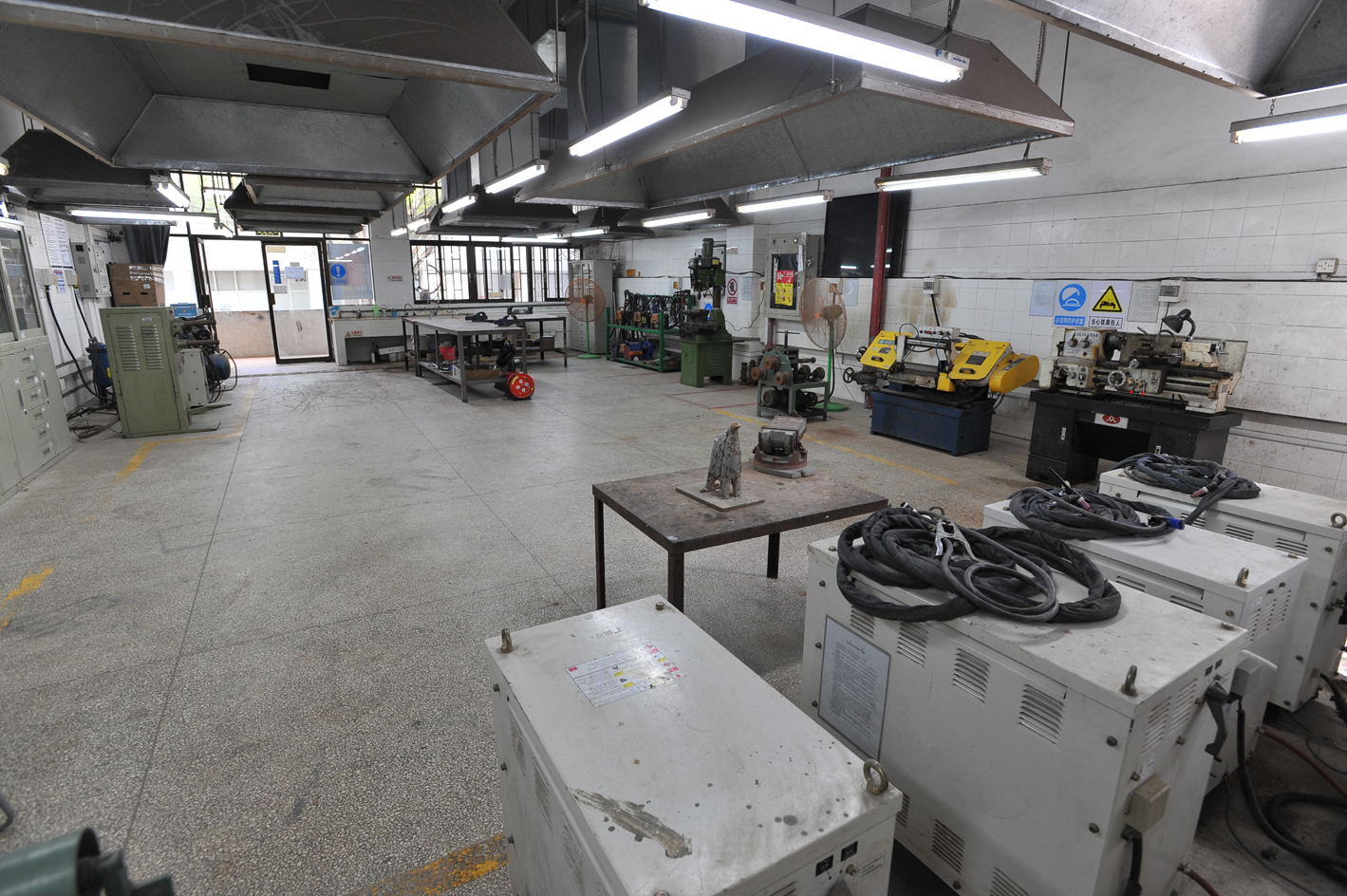 金工实验室是以金属类材料加工为主要功能的实验室,包括一个综合加工室和后座工棚两个空间。该室提供大、中、小型金属作品制作的设备和工具,如激光焊接机、等离子切割机、氩弧焊机、车床、铣床、金属型材切割机等等,可制作与金属相关艺术与设计类作品,同时具备加工金属配件的条件。主要为《空间营造计划》《陶金印艺术工作坊》《产品设计》《家具设计》《营造元素》等课程提供实验教学服务。